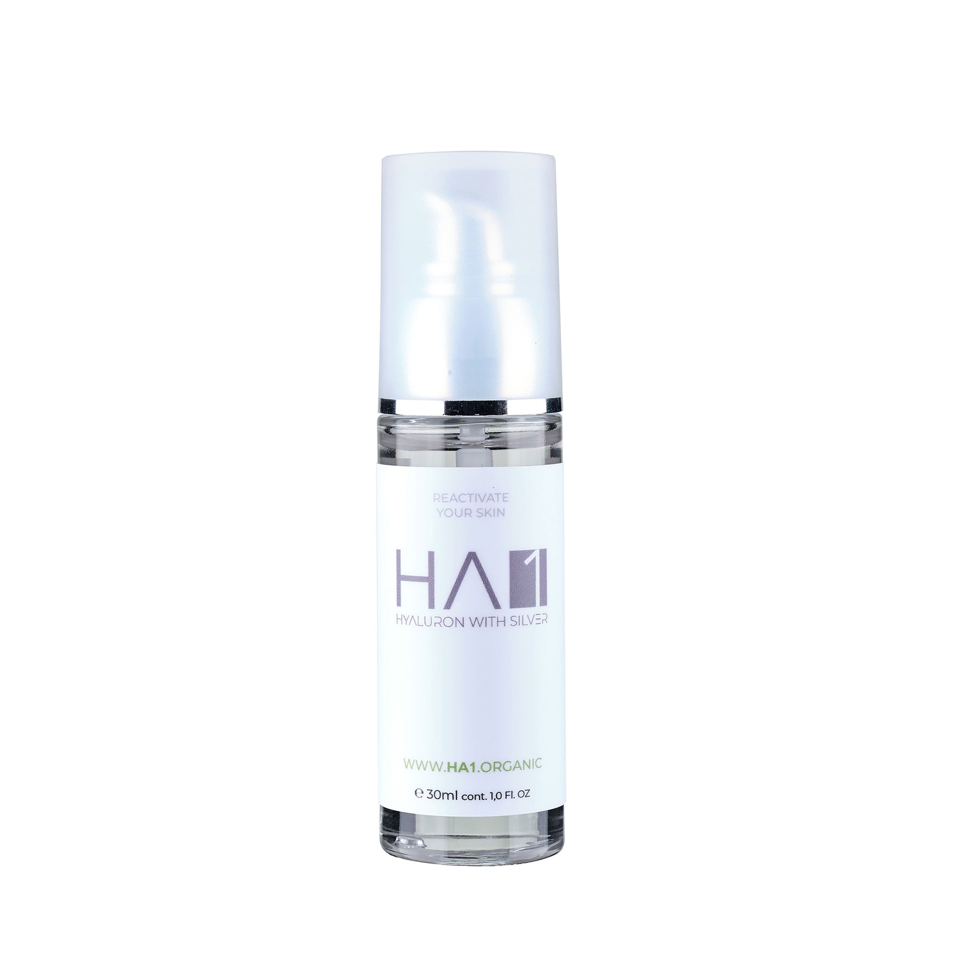 Serum z kwasem hialuronowym z drobinkami srebra. Bardzo dobrze tolerowany i odpowiedni dla każdego rodzaju skóry. HA1 to żel z kwasem hialuronowym wzbogacony najdelikatniejszym srebrem i siarką dla bardzo dobrej tolerancji skóry przy optymalnej skuteczności oraz dla widocznego i zauważalnego rezultatu.